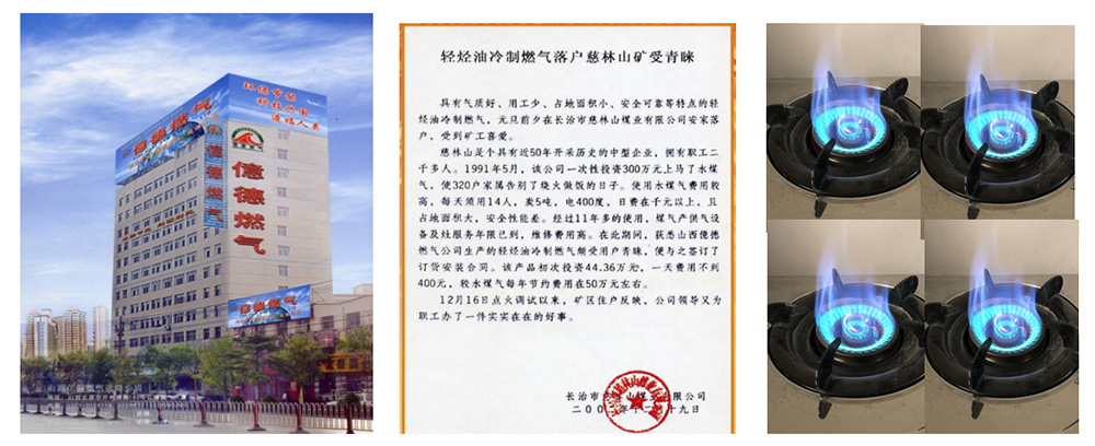 輕烴冷制燃?xì)猓?993年前研究的也是加溫制氣,做了107戶供氣,輕烴加溫36度以上就產(chǎn)氣,天氣冷,每天多次排殘液、管道每天排3~5(水)桶凝液(輕烴),火勢不穩(wěn),也威脅安全,準(zhǔn)備放棄改煤氣;國務(wù)院要求發(fā)展油制氣,研究不加溫試試,根據(jù)汽車用水降溫,摩托車用風(fēng)降溫不拉缸原理啟示,不兌任何添加劑,將輕烴完全汽化,解決了殘液、凝液問題,專門改裝了1梯6戶,室外明管不保溫,在零下23度沒有凝液,經(jīng)完善達(dá)到了供氣穩(wěn)定的目的,承建了多個(gè)小區(qū),常溫低壓供氣,使用穩(wěn)定,找不到任何缺點(diǎn);于2003~2005年八次向黨中央,國務(wù)院、有關(guān)部委報(bào)《喜報(bào)》:得到了大力支持,定為《國家鼓勵(lì)發(fā)展的資源節(jié)約綜合利用和環(huán)境保護(hù)技術(shù)項(xiàng)目》、《免稅項(xiàng)目》和《城市燃?xì)狻贰?/span>